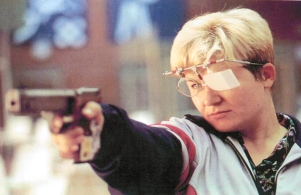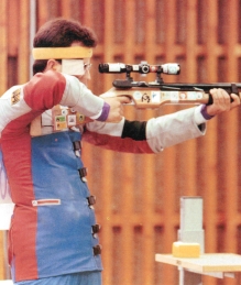| En rifle tres posiciones, se emplea blanco y distancia, pero se cuenta con 40 disparos para cada una de las tres, que son: de pie, arrodillado y echado. En la prueba de "pistola libre", se disparan 60 tiros desde una distancia de 50 m. a un blanco de diámetro de 50 cm. Para la especialidad "pistola de fuego rápido" se cuenta con cinco blancos a 25 m. de distancia. Los 60 disparos se dividen en grupos de 5, cada uno apuntando a una distancia. | ![]() |