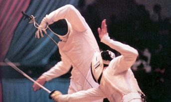 | Hay tres clases de esgrima para hombres, mientras que las mujeres cuentan solamente con el florete. También hay competiciones por eqquipos. Un combate dura 6 minutos o bien hasta que uno de los dos contendientes ha conseguido 5 "tocados". Se considera tocado cuando se hace coontacto en el área deteerminada del oponente, con la punta o filo del arma. | ![]() |