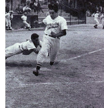 | Los corredores también pueden avanzar 'robando base' bajo ciertas circunstancias, como cuando el lanzador está ejecutando un lanzamiento, o cuando al receptor se le cae la bola. Para evitar los robos, los jugadores deben tocar a los corredores con la bola. | ![]() |